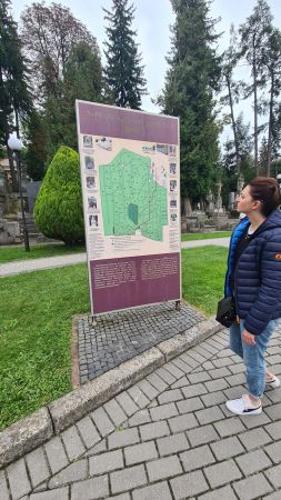 Sobotę rozpoczynamy śniadaniem w restauracji hotelowej. Podane bardzo obficie w formie bufetu szwedzkiego z przemiłą obsługą dostarczy nam dużo pozytywnej energii. Zbiórka o 11.00 w lobby /czasu lokalnego- mamy 1 h różnicy do czasu polskiego/ i zaczyanmy przygodę. Po raz kolejny wybieramy się na zwiedzanie miasta z naszą przewodniczką. Tym razem wycieczka tramwajem na Cmetarz Łyczakowski i Orląt Lwowskiech. Cmentarz Łyczakowski we Lwowie to najstarsza nekropolia miasta i jeden z najstarszych istniejących cmentarzy na terenie dawnej Rzeczypospolitej. Otwarty w 1786 roku, jest starszy od cmentarza na Powązkach czy cmentarza Rakowickiego. Teren cmentarza liczy 42 hektary i stał się miejscem spoczynku około 450 tysięcy osób. Znajduje się tam cmentarz Obrońców Lwowa oraz cmentarz żołnierzy Ukraińskiej Armii Halickiej. Wiele ze starych grobowców w ciągu ostatnich kilkunastu lat, staraniami rodzin oraz władz Polski, zostało poddanych renowacji. Natmiast nowa część to karty historii pisanej na naszych oczach. Groby wielu poległych w starciach ukraińsko- rosyjskich na Krymie.
